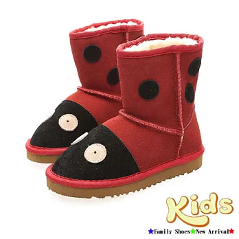 Kids可愛瓢蟲手工雪靴~紅色兒童款29紅色
