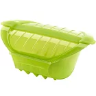 本商品一件入、容量 2500ml(適合 3~4 人份);耐熱度 -60~220 度C (請遠離直接火源),適用架於鍋上(直徑 20~23 cm)蒸煮或微波爐、烤箱、冰箱、洗碗機。傳統蒸籠是以竹編製成,使用久或清洗時容易竹邊斷裂或隙縫卡汙垢不好刷洗,試試用蒸煮籠來幫您料理健康無油的餐點吧,待水沸後架於鍋上,不論雞肉、海鮮或蔬食,利用高溫蒸氣可快速約 14~20 分鐘內完成無油烹煮,不僅建康也保留食材原味。使用時鍋內滾水需維持 3~5 cm 高度,避免空燒。全系列由高密度且品質穩定的白金矽膠製成(BPA Free);從前菜到甜鹹點心,只需將各類食材依序放入盒中加入調味料,美味立刻上桌。加熱時盒內類真空狀態可使水蒸氣有效循環,保留食材新鮮原味風味更佳;蒸煮所需油脂量較少,是現代人健康料理的好幫手。請勿在白金矽膠上使用尖銳器具,如刀叉等。