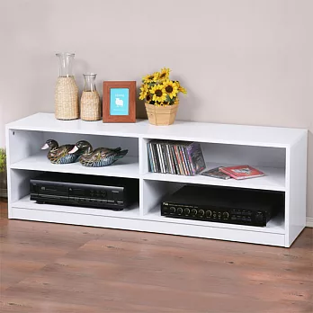 簡約風再創潮流!Homelike 個性時尚四格電視櫃,以明亮的純白色系打造,帶有些微紋理的絕佳質感,出色亮眼,輕鬆營造出簡約的空間風格!整體結構穩固耐用、板材紮實,排線孔的設計,讓您輕鬆整理線材;4格大收納空間,除了當電視櫃外,也可任您自由規劃,放置CD、書本、漫畫等等都很適用。俐落的外型,實用的設計,一個簡單百搭的單品,就能為您的居家空間帶來意想不到的改變!