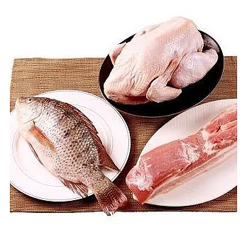 | 內含物 | 台糖附皮豬五花肉條 :600g±50g(約1台斤) 自然放山土雞 :1800g±50g(約3台斤)活力台灣鯛:450g±50g | 產地 | 台灣 |