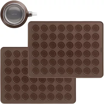 本商品一組含馬卡龍烤墊 x2 (單個一次可烤 48 枚,耐熱度 -60~220 度C),擠花器 x 1 (容量 350 ml,主體耐熱度 -60~220 度C )、花嘴 x 6(大小圓錐 x 3、大小花邊 x 3,ABS 瓶身大圓蓋與花嘴耐熱度 -40~80 度C );請遠離直接火源,適用冰箱、洗碗機 (其中烤墊、擠花器主體亦適合微波爐、烤箱)。悠閒的下午就來做點心吧,看著熱騰騰的點心、蛋糕,巧克力等出爐,心情都好起來了。傳統的平盤式設計,可一次烘培多個馬卡龍或比司吉點心,再加入蘋果、藍莓、椰子等不同乾果,輕鬆享受美好的午茶時光。好脫模的矽膠材質,讓您烤後方便快速享用,絕不沾黏破壞形狀(幕斯類請成型後再脫模);再操作簡單卻不失專業的擠花器。共六種不同擠花造型,隨您變化使用。使用前先旋轉開主體,將奶油、果醬、巧克力裝入後旋緊,即可更換各式花嘴。當醬料要先微波或烤箱加熱時,務必拔除 ABS 瓶身大圓蓋與花嘴,其餘白金矽膠材質微波安全無虞。全系列由高密度且品質穩定的白金矽膠製成(BPA Free);請勿在白金矽膠上使用尖銳器具,如刀叉等。