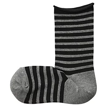 [MUJI 無印良品]女棉混足口捲折橫紋直角襪黑色參考捷克老奶奶手工編織襪所製作出的直角設計,穿著感舒適、不緊繃的襪子。