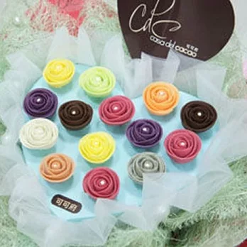 經典專利玫瑰花巧克力,浪漫優雅的玫瑰,朵朵傳遞著滿心的愛戀情感,收到了玫瑰也甜蜜了心頭。進口天然水果果泥,不添加其它化學物質,不同果泥的繽紛色彩為白巧克力帶來不同的風彩與風味,直接使用巧克力甘納許(為一般大眾稱之生巧克力),模擬玫瑰花一瓣一瓣手擠而成,口感極為滑順,品嚐時風味會直接在口中散發開來,水果的特有果酸與白巧克力融合為一,軟綿滑順的巧克力帶給人一種難以言喻的幸福感覺。