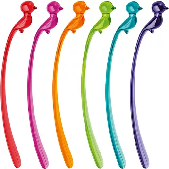 本商品一組六色各 1 支入、適用洗碗機;為您健康把關,系列商品不含 BPA、三聚氰胺等有害物質。Table talk 系列,以餐桌上互動、人際間的串流為發想,讓您用餐時話題不斷。調味檸檬汁、氣泡飲、雞尾酒等,您需要一款較長的攪拌棒。如黃鸝鳥般,圓圓身軀搭配上保持平衡的長尾巴,俐落的落於杯緣口上,巧妙的化身為盡責的調味棒。不僅設計精緻討喜、也是實用且創意的表現;當然還可當作派對時飲品的個人標識,避免錯拿尷尬。