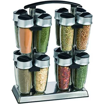 本商品一組含調味罐 (容量 80 ml) x 16 與桌上型旋轉座 x 1。享用披薩、義大利麵等料理,表面灑些香料,提升視覺與美味的雙享受。此款調味罐,平時為密封狀態,可防塵與防受潮。使用時,右轉上蓋露出細隔開口後,可細灑調味料;左轉上蓋露出一小孔,則為傾倒方式;透明玻璃瓶身,方便直接查看內裝量;附桌上型旋轉座,擺放桌面方便且可旋轉取用設計,是效率料理的好幫手。